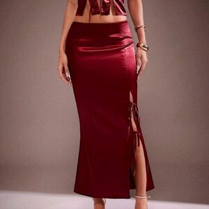 Women's Elegant Solid Color Side Tie Skirt, Autumn