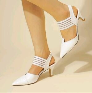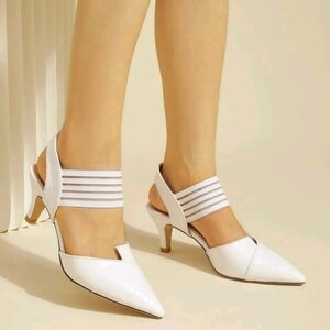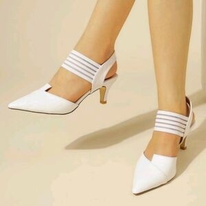 Women's Elegant Spring/Summer Pointed Toe High Heel White Stone Print Elastic St