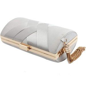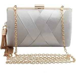 Women's Elegant Tassel Pendant Silk Evening Bag Clutch Silver