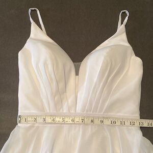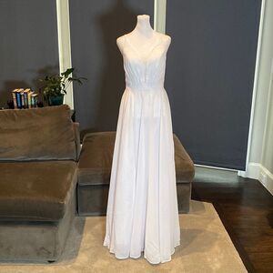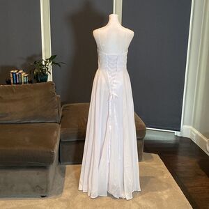 Women’s Elegant White Chiffon Full Length Dress CorsetBack Leg Slit Size 2 *READ