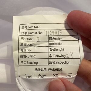 **there is a small slit in the material in the bra cup on the inside of one side of the bodice. It can not be seen as it is on the inside of the dress, but is there. Will not affect the look/function of the dress. Dress priced lower to compensate for this flaw.