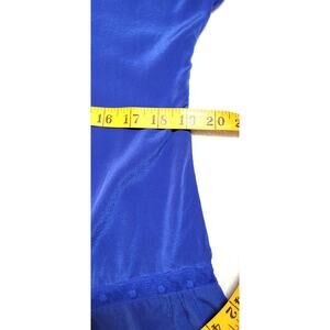 Womens Royal Blue Silk Short Sleeve Top Blouse Lace and Ruffles Detailing. There are no tags at all on this, it feels like silk, elevated quality material with intricate lace and ruffles very well made. I AM GUESSING SIZE LARGE. No damage/stains/rips.