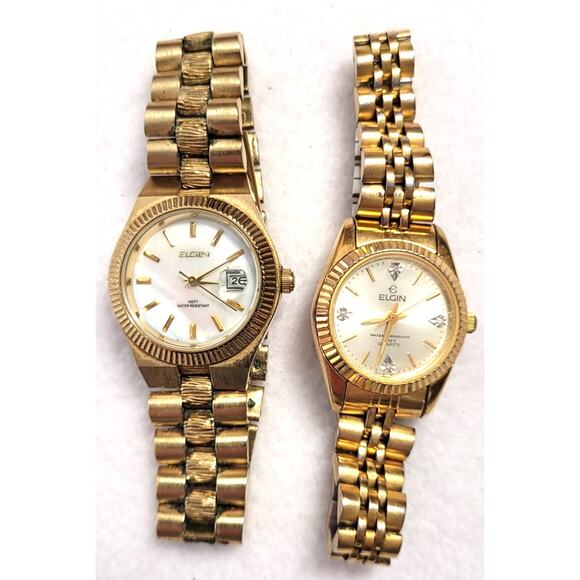 Womens Elgin Vtg 1980s Watch Lot 2 Pc Goldtone Mechanical Quartz Water Resistant. Not working might just need battery, sold as is, I know nothing about watches.