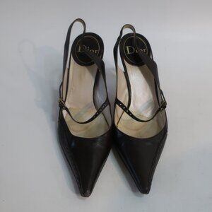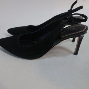 Womens Elie Tahari Black Suede Pointy Slingback Heels Pumps 38.5 US/8.5