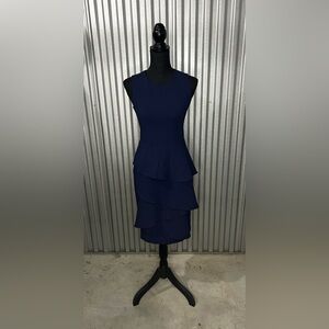Women’s Eliza J Blue Solid Polyester Layered Flow Designer Midi Dress Size 2