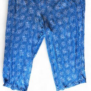 Women's Ellen Tracy Blue White Paisley Pajama Capri Bottoms 2X EUC