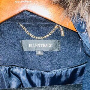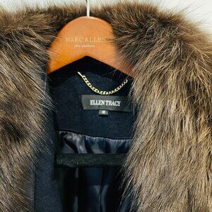 Women’s Ellen Tracy Long Wool Coat With Fox Fur Trim Size 16