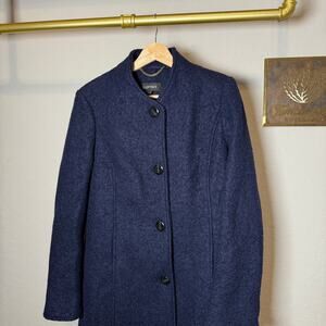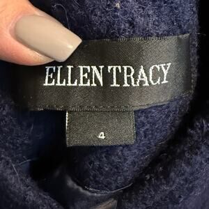 Women's Ellen Tracy Navy Wool Blend Button Front Coat with Pockets Size 4 NEW