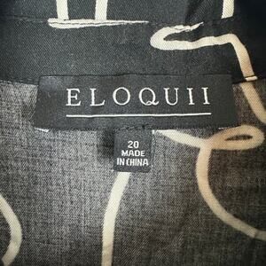 Womens Eloquii Black White Abstract Print Button Up Blouse Long Sleeve Career 20