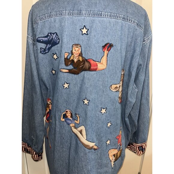 Has Vintage American Pin Up Gals Sewn on the front and back