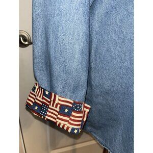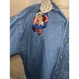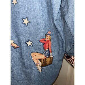 Womens Embellished Denim Blue Jean XL Top Quilt Pin Up Girl Quilter USA Patriot
