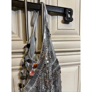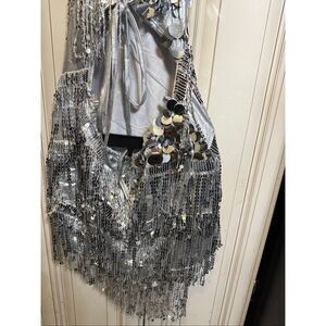 Women's Embellished Sequin Open Back Halter Sleeveless Beyonce Dress Silver XS