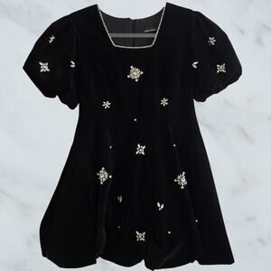 Women's Embellished Velvet Baby Doll Dress Sz Small