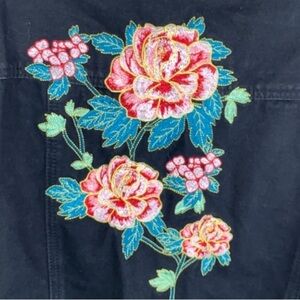 Women’s Embroidered Boho Floral Black Long Sleeve Denim Jacket Size Small