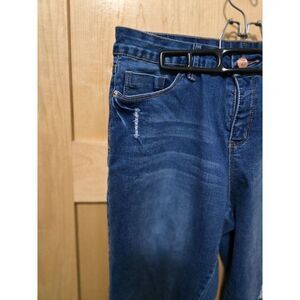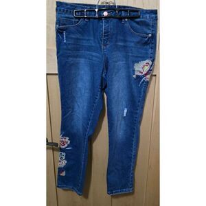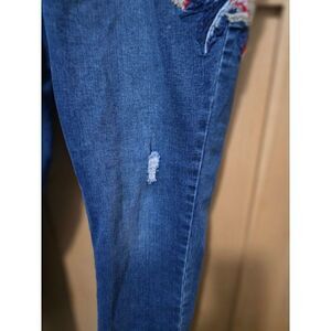Womens Embroidered Distressed Blue Jeans Size 16 With Floral Design