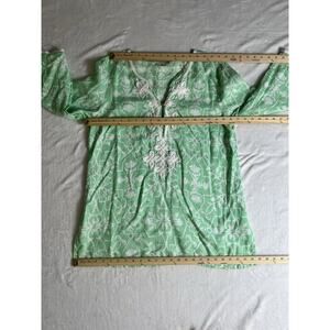 Women’s Embroidered Linen Tunic Size XL Green White California Beachy Resortcore