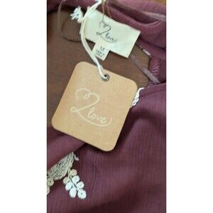 Women’s Embroidered Peasant Top Boho Blouse Long Sleeve Floral Red Burgundy Sz M