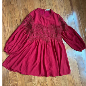 Women's Endless Rose Lace Cutout Mini Dress in Cranberry, Long Sleeves, Small