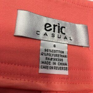 The Womens Eric Chino Cropped Pants Peach Pink Pedal Pushers Size 6 by Eric Casual are a stylish addition to any wardrobe. Made of a soft cotton blend, they're perfect for casual or dressy occasions.