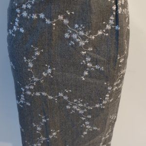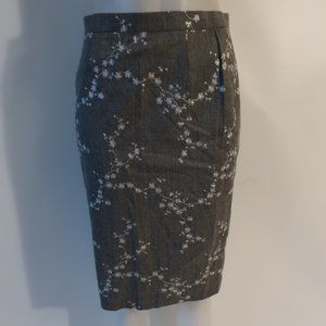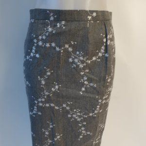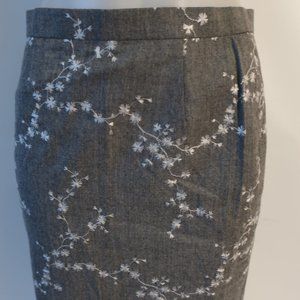 Womens Escada Margaretha Ley Gray White Embroidered Wool Pencil Skirt 40 US/M *
