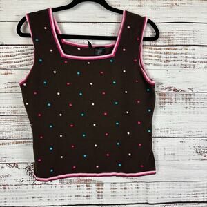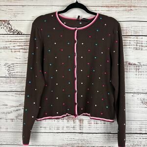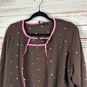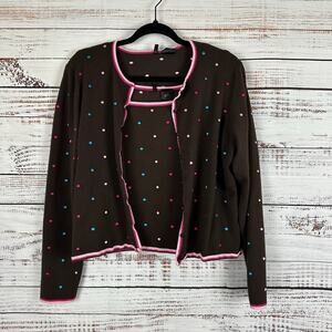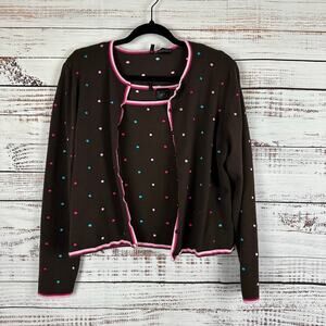 Womens Etoile Brown Pink Embroidered Dot 2 Piece Button Front Cardigan Set Sz L