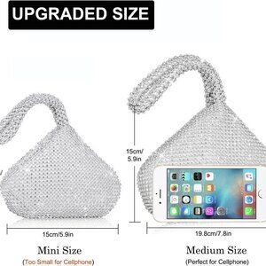 Product details Fabric type Big Diamond Version Origin Imported About this item Upgraded Medium Size:7.8''x5.9'' . Large Capacity:Nicely made and plenty of room for most things needed for an evening out. You can easily fit your cell , cards, money, car keys, small wallet, mirror, lipstick, some makeup etc. Design:Made of high quality full soft dazzling rhinestone and fabric lining, with zipper can be opened and closed smoothly will more attractive. Glitzy and glamorous look, elegant and classic evening clutch bag. Occasions:This rhinestone clutch purses for women goes well with