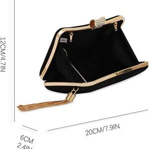 High Quality Material:This black evening bag/clutch for women, has Stylish Exterior, the Outer Material Is Made of Silk,Satin and hardware.Inner Material is Polyester Fabric.