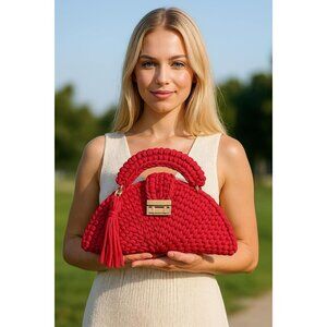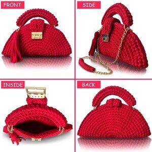 Women's Evening Clutch Handmade Crochet Small Formal Flap Red Crossbody Bag