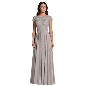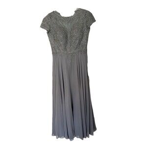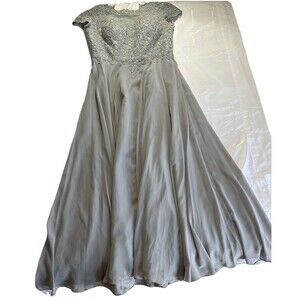 Women’s Evening Gown XL Gray Chiffon Sequin Beaded Wedding Event