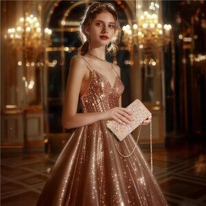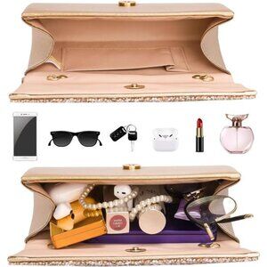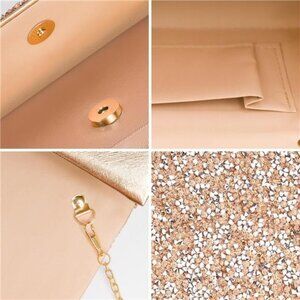 *Radiant Elegance: Sporting a rose gold hue, this metallic evening purse exudes a sense of lavishness. The bling rhinestones on the flap emit a dreamy sparkle, making it a stunning addition to your ensemble
