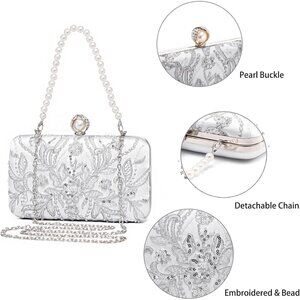 ⚡ Women's Evening Sequins Beaded Decent Designed Embroidery White Clutch Handbag