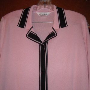 Womens Exclusively Misook Pink Black Cardigan Sweater Jacket Top Small