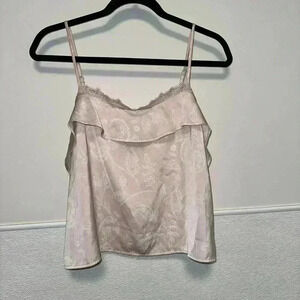 Women's Express Cami, Size M, Pink Blush with Floral Silky Polyester ruffles