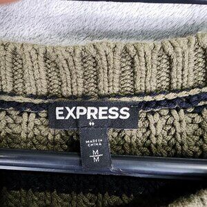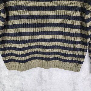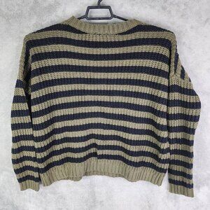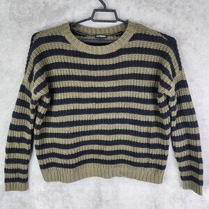 Womens Express Olive & Black Striped Knit Sweater Crew Neck Long Sleeve Size M