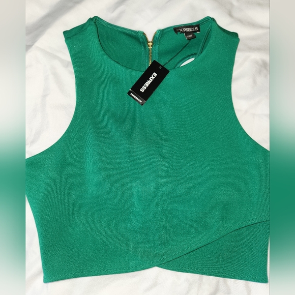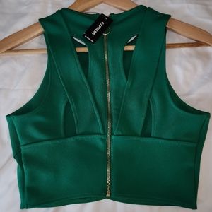 NWT Women’s Express High Neck Racerback Green XS Zipper Back Stored In Smoke-Free/Pet-Free Environment
