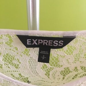 Lightly worn white lace flows shirt from Express. Shirt has one small imperfection on the sleeve as shown in image. Otherwise, shirt is in excellent condition. Please feel free to send all questions and offers 😊