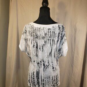 Women's Express White and Black Graphic Sheer Short Sleeve Tee - M