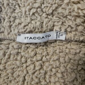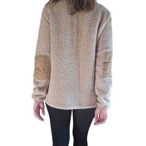 this womens Size small Sherpa Half Zip pullover is perfect for the cold winter months. from the brand staccato. it is a thick sweater with pockets to keep your hands warm.