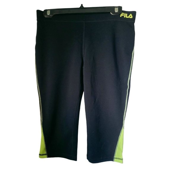 FILA ATHLETIC Knee Length Capris Medium Size Medium. Black and fluorescent yellow. Keyport with zipper in the back.