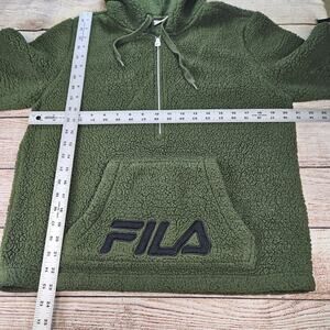 Women's FILA Green Sherpa 1/2 Zipper Pullover Hoodie Size Medium. Please see pics for measurements