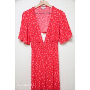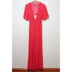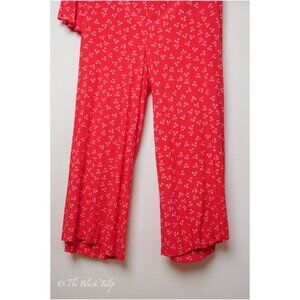 Women's FINDERS Pantsuit Size S/M Red Floral Wide Leg Jumpsuit Deep V Neck Boho