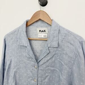 Women’s FLAX 100% Linen Blue Button Down Blouse Top Size Large L