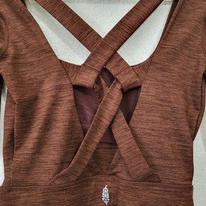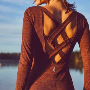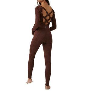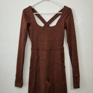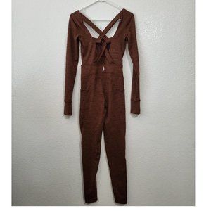 This cute FP Movement Crossback Jumpsuit - Featuring a very comfortable fit for your workouts and daily errands. Made of soft and stretchy knit. Cross back long sleeves one piece jumpsuit. Side pockets, square neckline, and thumb hole. Partially lined. 81% polyester 19% elastane. Color: Seaside Cottage (brownish red). NEW WITH TAGS. Size: XS.