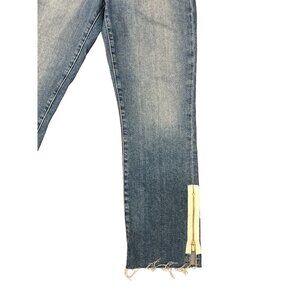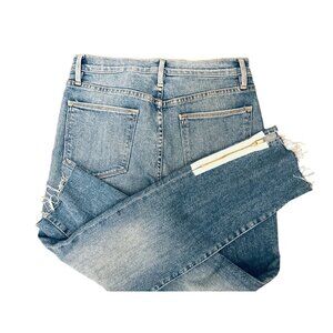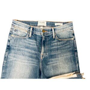Women's FRAME Le Hight Strait Blue Jeans White Zipper Bottom of the Leg Pants 28