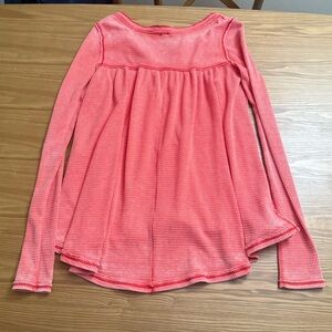 Womens FREE PEOPLE We the Free Kai Henley Top Size XS Pink Waffle