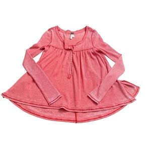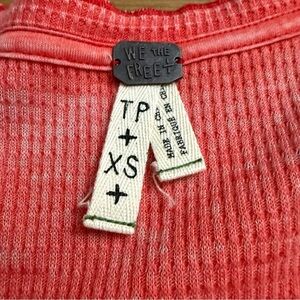 Womens FREE PEOPLE We the Free Kai Henley Top Size XS Pink Waffle