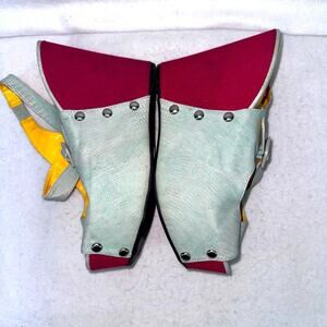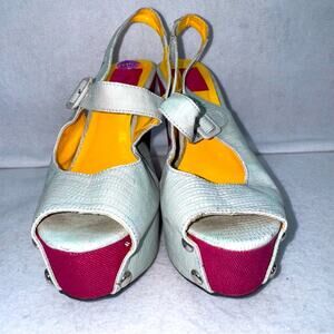 Women’s FRH Platform Slingback Wedges size 8.5 Burgundy and Grey 5” Heel. Please see all photos. The inside of the right shoe is missing a grommet.