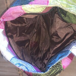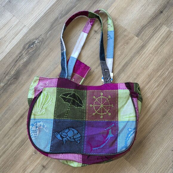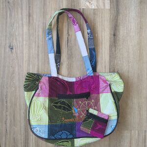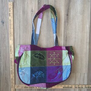 Womens Fabric Tote Bag Multi-Color Squares Zipper Shoulder Purse