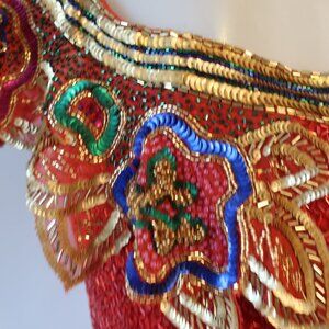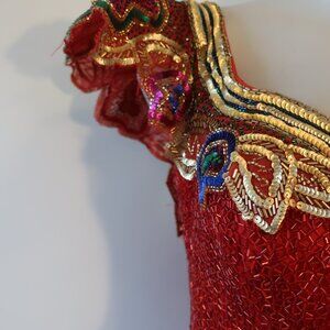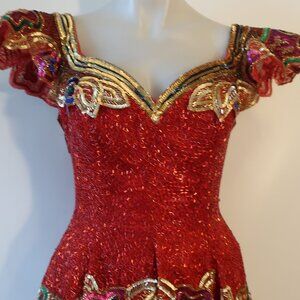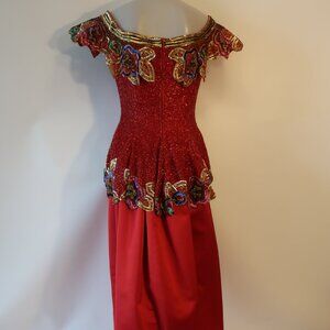 Womens Fabrice Silhouette Red Gold Beads Sequin Silk Satin Formal Gown Dress 10*