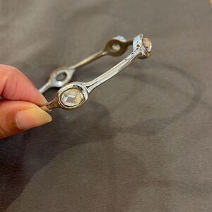 Womens Faceted AB Crystal Inliad Cuff Bangle Bracelet Silvertone